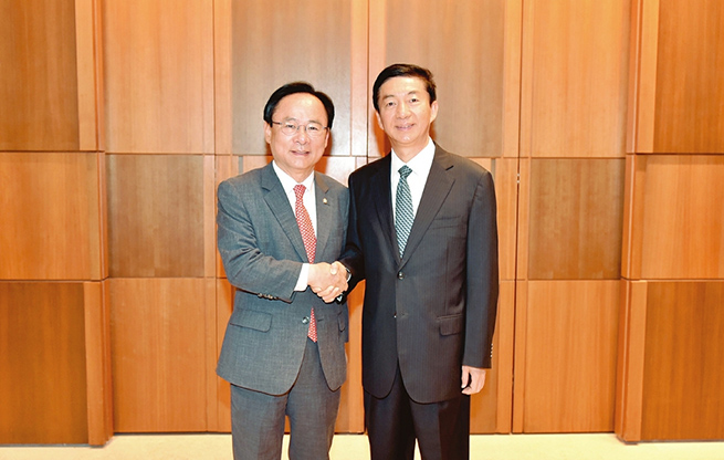 骆惠宁会晤韩国国会副议长李柱荣。 孙景凡 摄