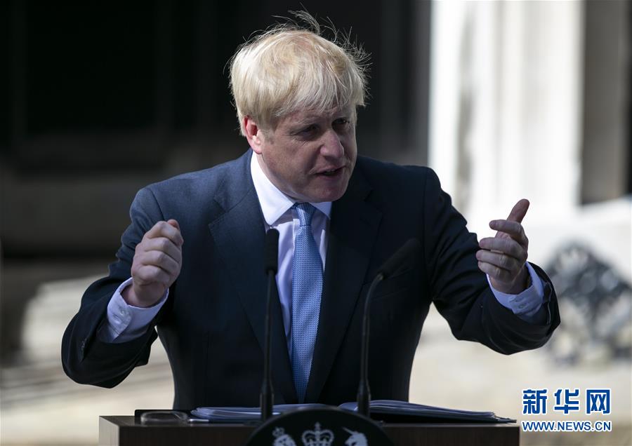 7月24日,在英国伦敦,新当选的英国首相鲍里斯·约翰逊在唐宁街10号首相府门前发表讲话。 英国前外交大臣、伦敦前市长鲍里斯·约翰逊23日当选执政党保守党领袖,在获得女王伊丽莎白二世批准后将接替特雷莎·梅担任英国首相。 新华社记者 韩岩 摄