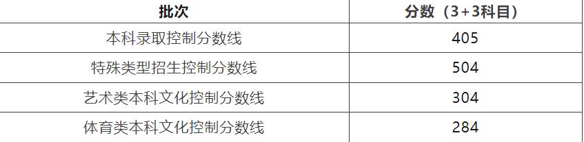 本科录取控制分数线 405分