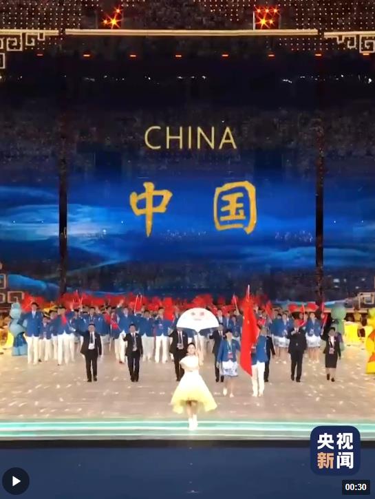 在中国代表团入场时,背景音乐一秒切换成《歌唱祖国》,瞬间引发现场观众大合唱。在中国香港、中国澳门和中国台北代表团入场时,全场更是热烈欢呼,掌声轰鸣,表达对同胞的血脉深情。直播中网友纷纷留言说“中国代表团出场,不止梅兰竹菊,还有万里山河”,点赞总台直播画面精巧绝美,直戳心窝。
