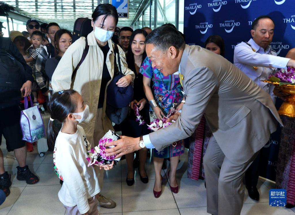 新华社曼谷9月25日电(记者高博 宋宇)自25日起,泰国对中国游客实施为期约5个月的免签政策。当天上午,泰国总理赛塔·他威信与多名政府高官前往首都曼谷的素万那普国际机场迎接中国游客。