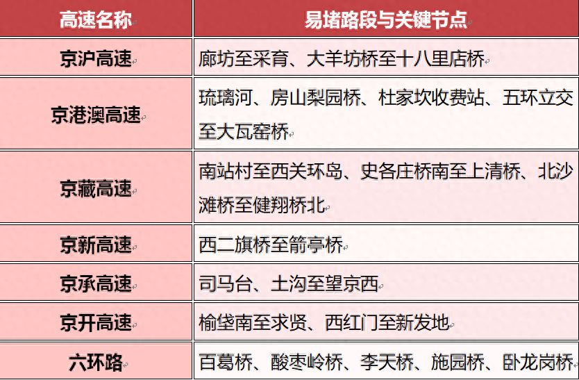 返程高峰期间,以下路段入城方向将产生一定拥堵: