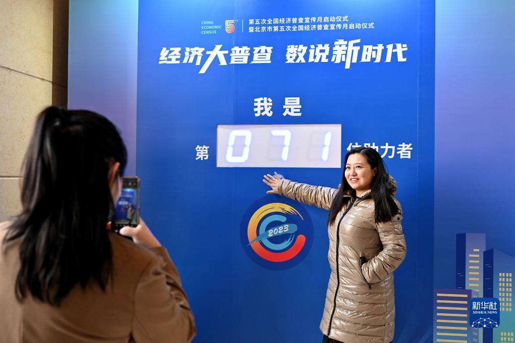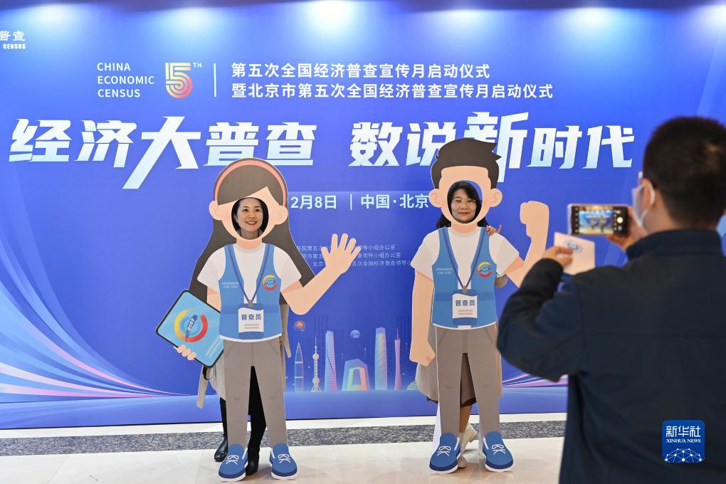 12月8日,与会者在启动仪式开始前在活动现场合影。当日,第五次全国经济普查宣传月启动仪式暨北京市第五次全国经济普查宣传月启动仪式在北京举办。 新华社记者 李鑫 摄