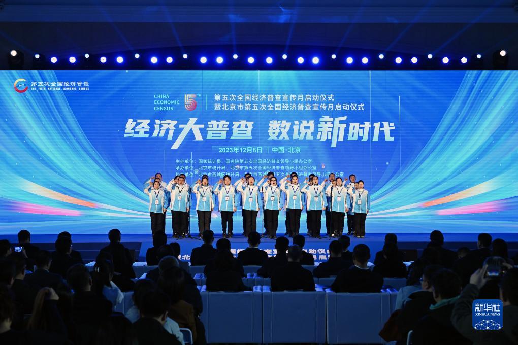 12月8日,第五次全国经济普查普查员代表在启动仪式上宣誓。 新华社记者 李鑫 摄