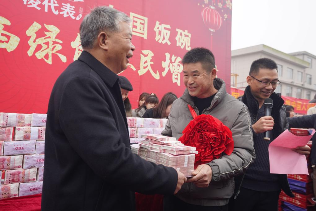 2024年1月8日,江西省南昌市安义县的种粮大户凌继河给种粮能手和员工发放1169万元现金作为年终奖,一对种粮能手夫妻年收入可达12到30余万元。新华社记者 周密 摄
