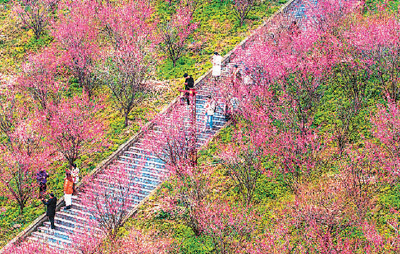 游客在湖北省秭归县屈原故里景区赏梅游玩。王 罡摄(人民图片)