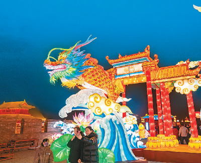 游客在河南省洛阳市2024隋唐河洛文化庙会上欣赏新春灯展。黄政伟摄(人民图片)