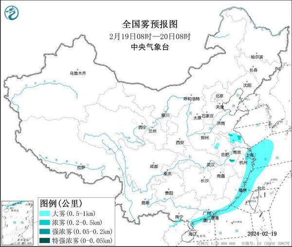 中央气象台2月19日6时继续发布大雾黄色预警:预计,19日白天至夜间,东海西部海域、台湾海峡、广东沿岸海域、广西沿岸海域将有大雾,能见度不足1公里。此外,19日早晨至上午,江苏北部等地将有大雾天气,局地有能见度不足200米的强浓雾。