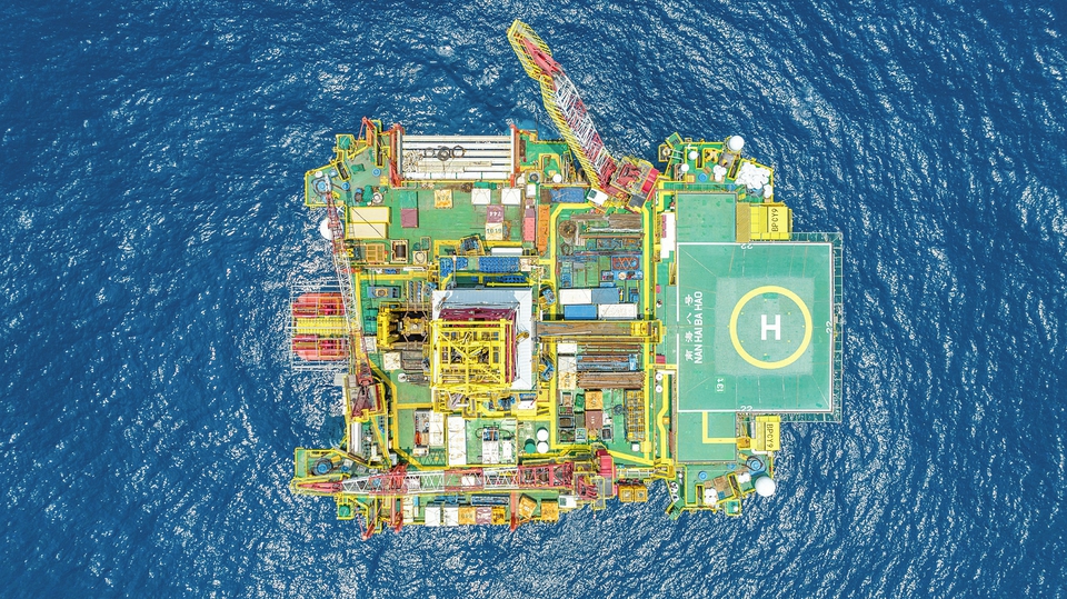 图为“南海八号”钻井平台在开平南油田进行钻探作业。