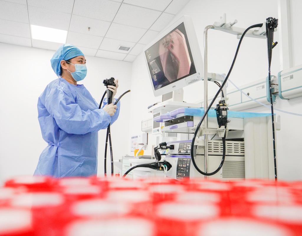 2024年1月2日,河北省遵化市中医医院的医生在调试设备。新华社发(刘满仓摄)