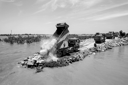 记者在湖南华容县团洲垸洞庭湖大堤决堤现场了解到,自堤溃后,加固“第二道防线”的工作紧张进行。“第二道防线”是离决口不远处的钱团间堤,这是一道横亘在团洲垸和钱南垸之间、长约14.3公里的间堤,守护着隔壁钱南垸的十余万亩良田和百姓的家园。