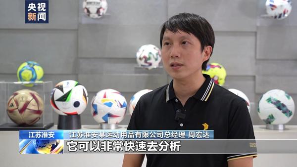 江苏淮安某运动用品有限公司总经理 周宏达:将芯片安装在内胆当中,透过芯片的实时数据,可以非常快速分析场上所有球员的状态,比如采集球员的体能状态。