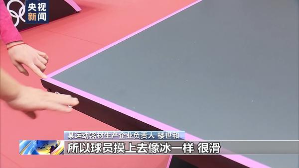 某运动器材生产企业负责人 楼世和:表面有高分子特殊处理,球员摸上去像冰一样,很滑,是最新的技术。