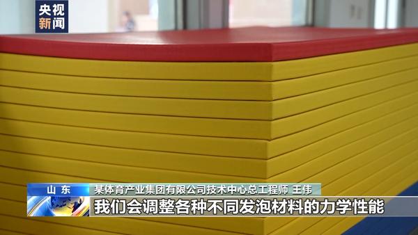 某体育产业集团有限公司技术中心总工程师 王伟:我手里拿的是摔跤垫,这一款是柔道垫,根据项目的不同,我们会调整各种不同发泡材料的力学性能。比如发泡的倍率、密度、硬度以及孔径的大小、压缩的弹性性能。首次推出了智能芯片的技术,可以实时采集运动员在运动过程中的力量、速度以及区域信息,以便于给运动员一个训练指导。我们在皮革的涂层上加了一层纳米抗菌涂层膜,它能保证当垫子表面具有微生物的时候,不容易发生积聚和繁衍。这项技术是我们首次应用到柔道垫的产品上。