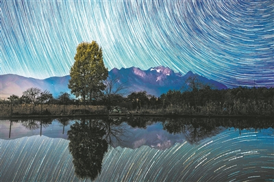 图为十二月十三日凌晨在云南省丽江市白沙镇拍摄的星空(堆栈照片)。