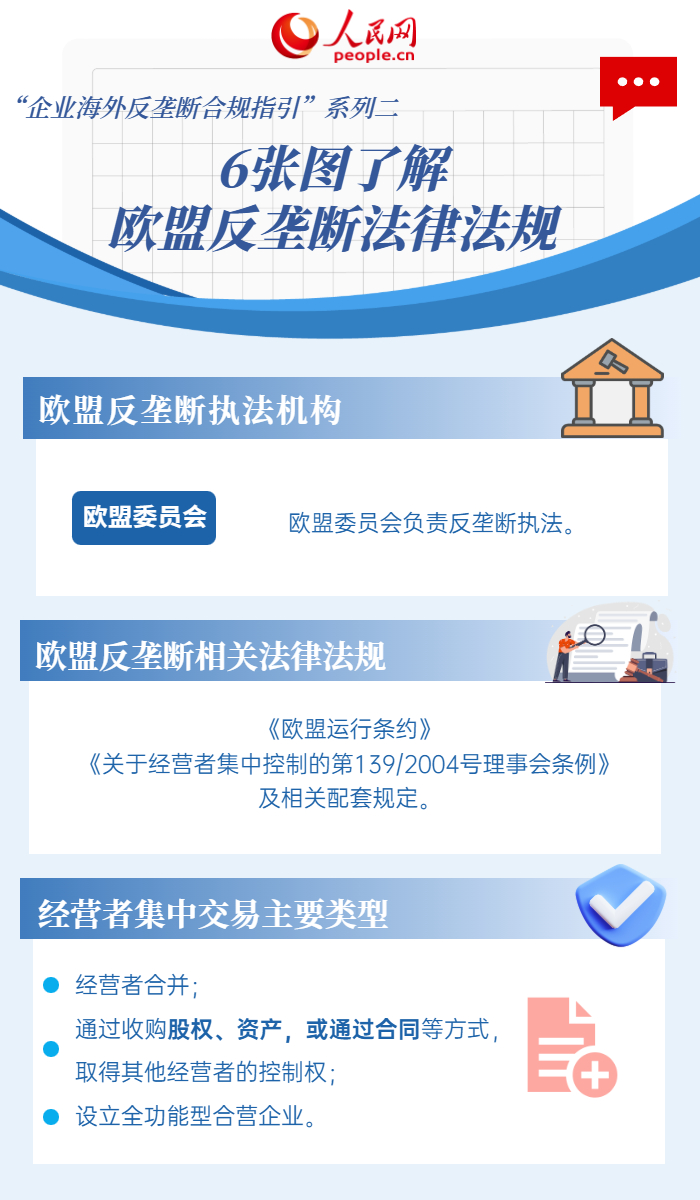近年来,我国企业国际化进程加速,越来越多企业“走出去”参与国际竞争。针对企业比较关心的海外反垄断合规问题,人民网联合市场监管总局反垄断二司特推出“企业海外反垄断合规指引”系列图解,按国别市场分类带您了解境外反垄断法律制度,为广大企业经营者提供参考。