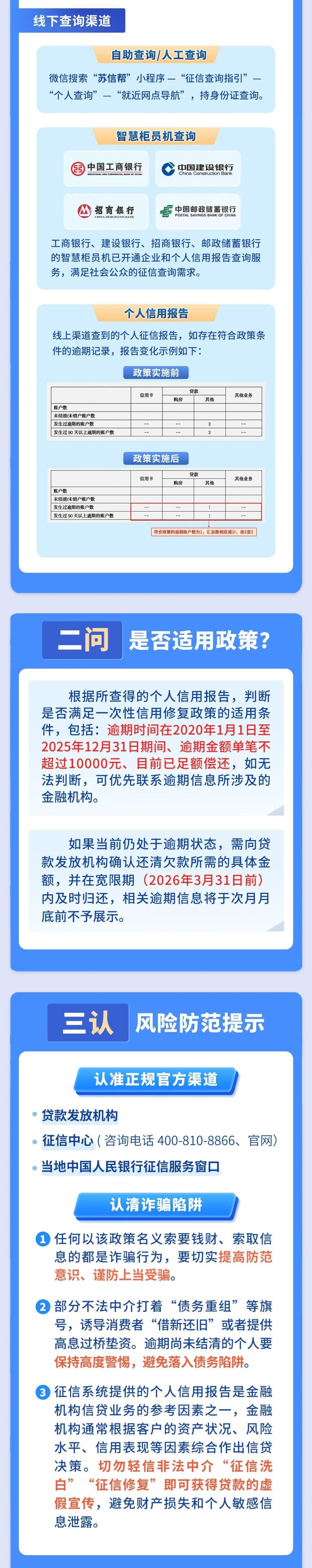 为解决群众“信用困境”,支持信用受损但积极还款的个人重塑信用,助力经济持续回升向好,中国人民银行于2025年12月出台“一次性信用修复政策”。今天(3月31日),这项政策即将截止。