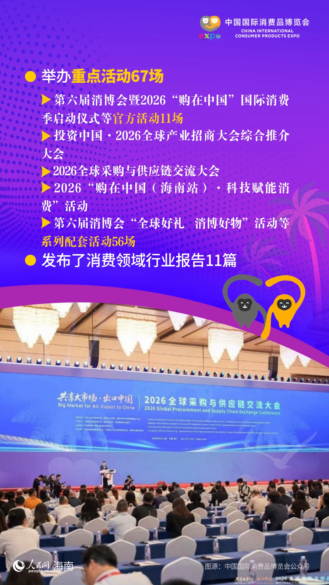 一扇窗口联通内外 一场盛会拥抱世界。4月13日至18日,以“开放引领全球消费,创新驱动美好生活”为主题的第六届中国国际消费品博览会在海南举行。本届消博会是2025年12月海南自贸港启动全岛封关运作以来的“首展”,也是今年中国重大外贸展会的“首展”。一组数据看本届消博会亮眼成绩!