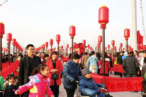 焕然一新的宽敞场地,统一的灯杆、火红的灯笼、唢呐的乐声、动人的传说……河曲九曲黄河灯游会开门迎客了。方圆十几里的河曲人扶老携幼转这个灯游会,沾喜气。伴着舒缓的音乐,一拨一拨的游客穿行于灯阵中,或观赏彩灯,或击鼓祝福,或拍照留念。