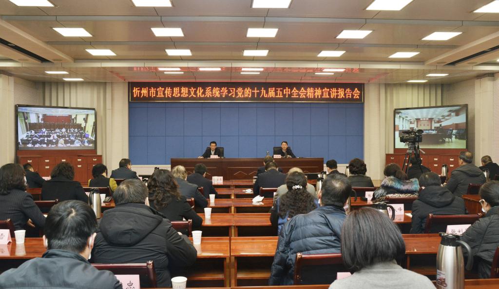 本报讯 (记者乔龙飞)12月23日,我市宣传思想文化系统学习党的十九届五中全会精神宣讲报告会举行。市委副书记、宣传部长、市委宣讲团团长郭奔胜作宣讲报告。他强调,要深入学习贯彻五中全会精神,聚焦“十个怎么看怎么办”,推动忻州宣传思想文化工作强起来。市政府分管领导、秘书长郭宝厚主持会议。