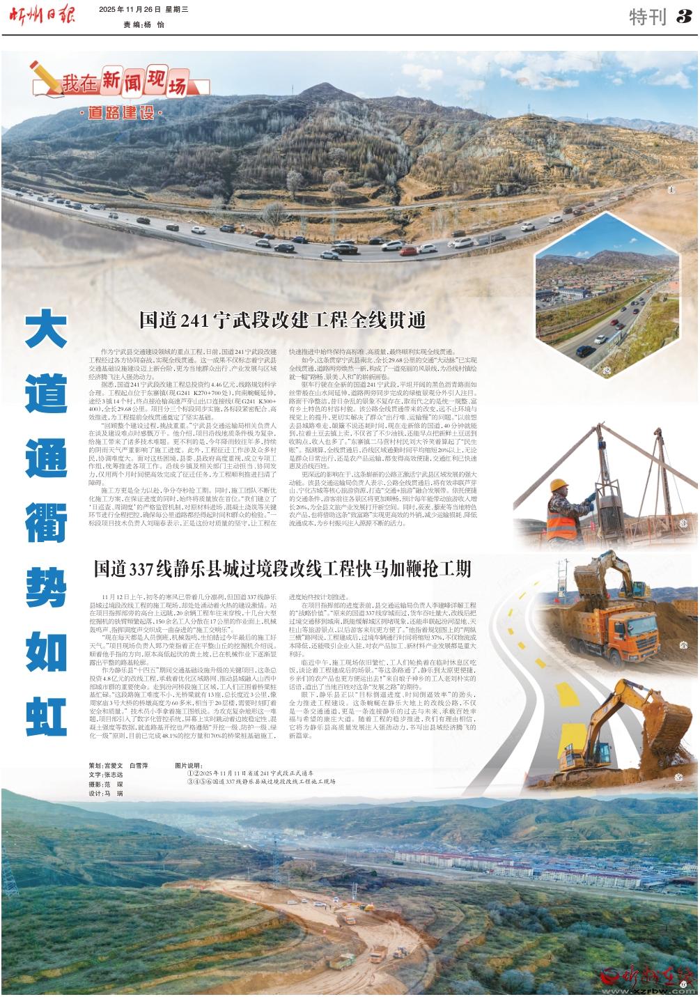 眼下,静乐县正以“目标倒逼进度、时间倒逼效率”的劲头,全力推进工程建设。这条蜿蜒在静乐大地上的改线公路,不仅是一条交通通道,更是一条连接静乐的过去与未来、承载百姓幸福与希望的康庄大道。随着工程的稳步推进,我们有理由相信,它将为静乐县高质量发展注入强劲动力,书写出县域经济腾飞的新篇章。