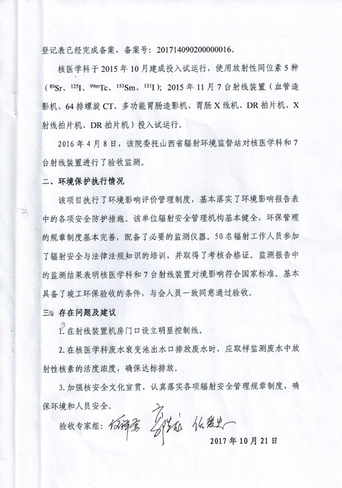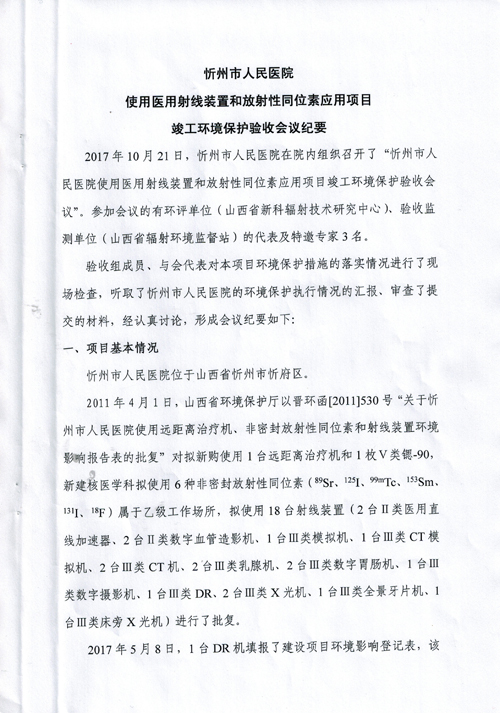 忻州市人民医院环保验收公告