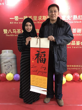 12月13日,毛里求斯姑娘早上从河南来,到原平八马茶业店推介毛里求斯国礼茶。