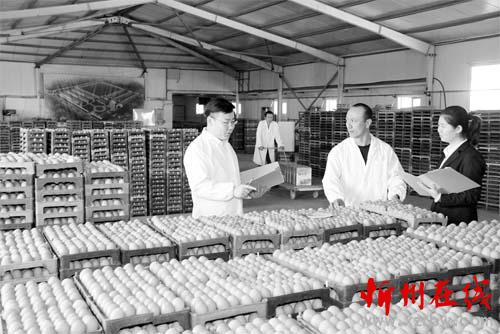 位于原平市闫庄村的山西如亮饲料有限责任公司蛋鸡生产基地,从忻州秀容小微企业专营支行得到“绿色信贷”450万元,建起了6个自动化科技养鸡作业室,养鸡30万只,被山西省农业厅命名为“无公害鸡蛋产地”。国家农业部产品质量安全中心也颁发了“无公害农产品”证书。图为产出的“无公害鸡蛋”。金俊贤 摄