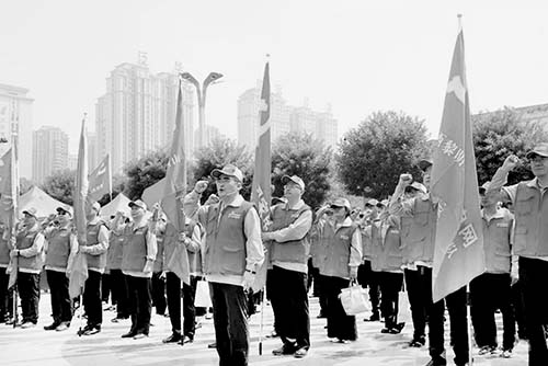图为国网忻州供电公司党员服务队进行集体宣誓。