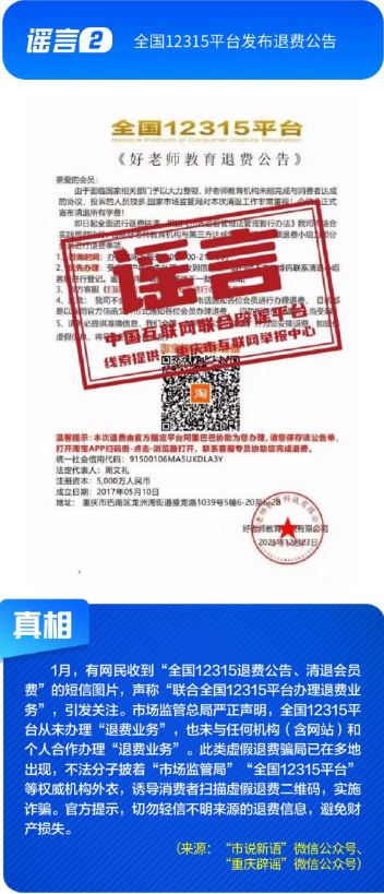 全国12315平台发布退费公告