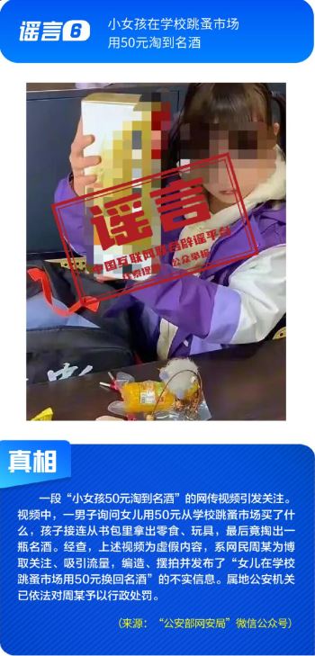 社会民生领域谣言引发不当炒作。“小女孩在学校跳蚤市场用50元淘到名酒”的视频,实为摆拍炒作,虚构“捡漏”情节博取流量;“某奶茶品牌疑似擦边毒品”蹭炒网上热点,似是而非、夸大其辞的说法对企业合法经营造成困扰,也引发公众不必要的焦虑;“微信好友数量过多会被封号”系对平台运营机制的无端猜测,利用网民对平台规则的陌生进行炒作,还可能给黑灰产带来可乘之机。