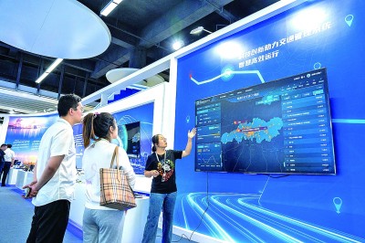 10月26日,工作人员在湖南株洲国际会展中心向观众介绍北斗技术在交通管理系统中的应用。新华社记者 陈思汗摄