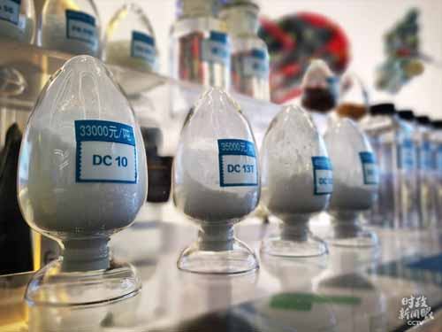 由上海凯赛公司研发的长链二元酸单体,可用于生产高档聚酰胺、尼龙粉末涂料等产品。山西将联合凯赛公司打造双千亿级生物基新材料产业集群。(总台央视记者张晓鹏拍摄)