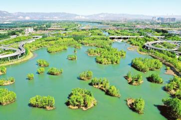黄河山西段流经4市19县,总长965公里,占黄河总长度的1/6。经过多年坚持不懈治理,汾河太原城区段良好生态环境与城市基础建设相得益彰,成为现代都市一条生态长廊。下一步,太原市将加快实施汾河四期湿地建设,让汾河景区继续北延约10公里,使汾河太原城区段实现全生态治理。图为5月16日拍摄的太原汾河湿地公园。 本报记者李兆民摄