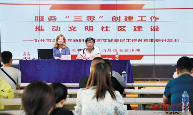 为进一步提升新时代文明实践站的建设水平,结合“三零”单位创建工作,推动文明社区建设,近日,由忻州市文明办、忻府区委宣传部组织开展的忻州市2020年新时代文明实践基层工作者素能提升培训会在忻府区新建路街道九原社区举行,相关专家对社区的工作人员进行了培训。 张存良 摄