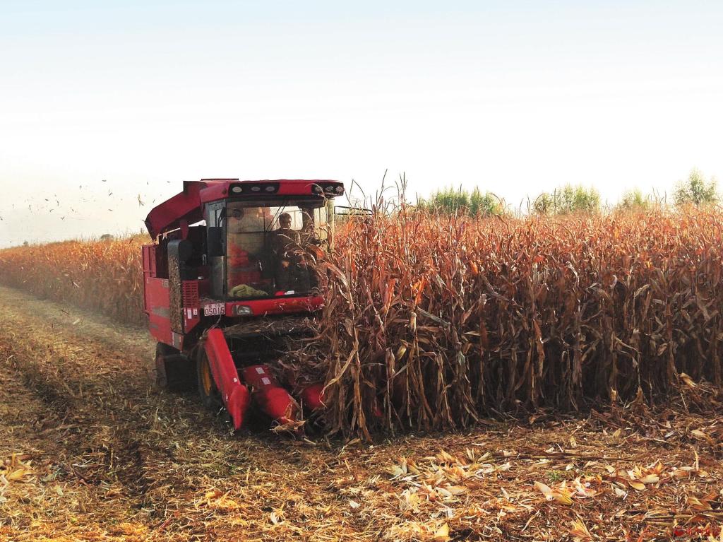 10月9日,玉米收割机在忻府区北义井乡高家庄村开展机械化作业。冯伟伦 摄