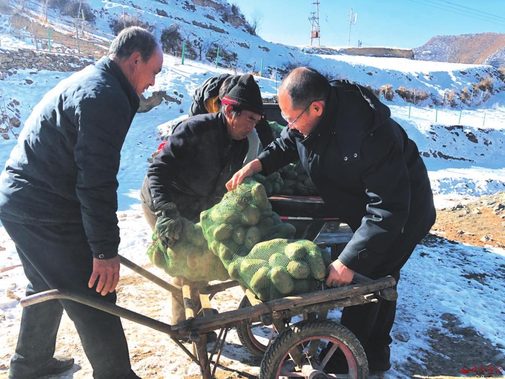 晋能控股电力集团同华发电公司发电运行党支部在近日开展的“爱心捐赠,温暖传递”主题活动中,向该公司精准扶贫帮扶村——宁武县圪廖乡黄岭村和怀道乡中马坊村捐赠衣物共计260余件。截至12月7日,在进行消费扶贫活动中,共采购当地土豆、牛肉等农副产品2300余斤。图为消费扶贫活动现场。 (阿炜 摄)