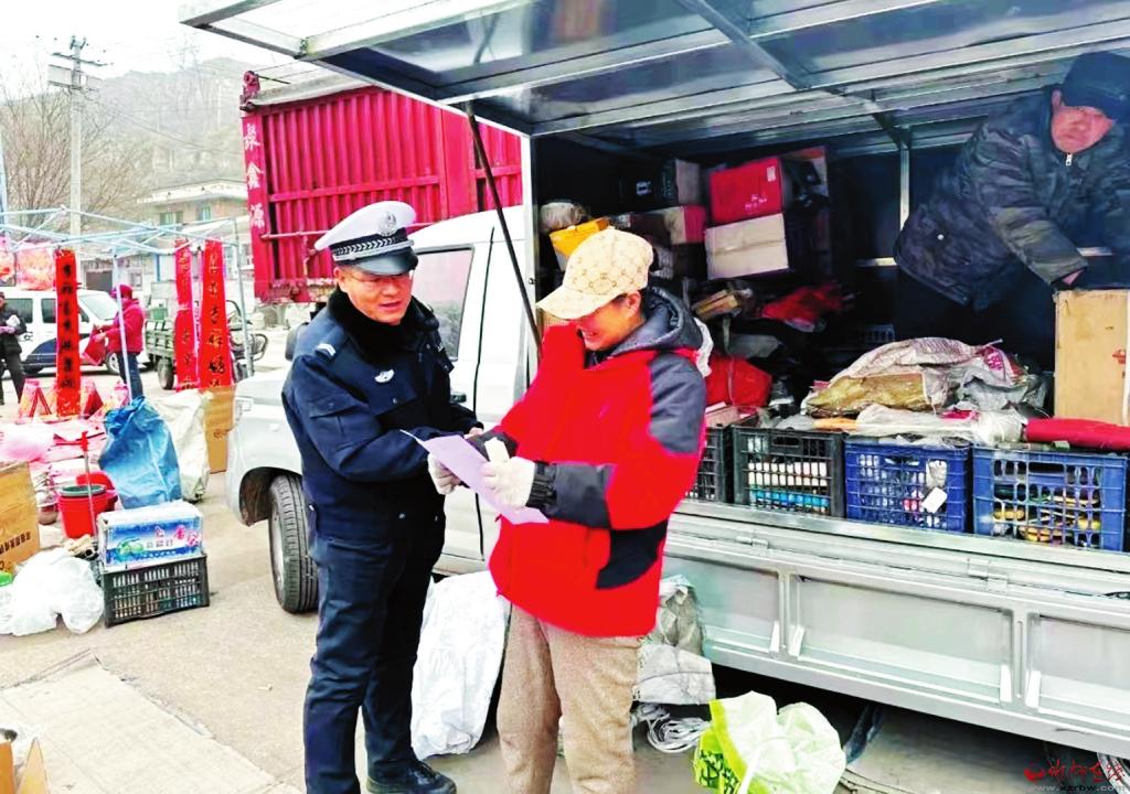 交警通过面对面讲解、发放交通安全宣传资料等形式,向摊主商贩和赶集群众大力宣传酒驾、超员、驾乘摩托车不戴安全头盔等交通违法行为所带来的严重后果,并提醒广大群众坚决杜绝酒后驾驶、疲劳驾驶、无证驾驶、超员超载等交通违法行为;乘坐车辆时,不要乘坐超员车、非法营运车、低速货车等有交通安全隐患的车辆,增强文明交通意识,自觉遵守交通法规,确保交通安全。