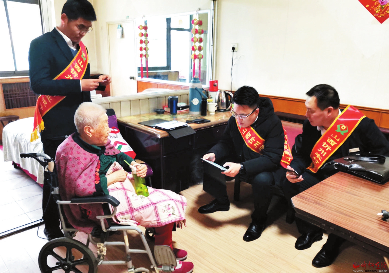 针对申领高龄补贴的客户办理银行卡骤增的实际,连日来,忻州农商银行积极采取措施,不断推动服务优质化,推出上门预约服务,以金融之力帮助特殊群体解难题、办实事,让金融服务“心贴心”。图为该行工作人员在利民街原地方铁路局宿舍开展上门办卡服务。(本报记者张建国摄)