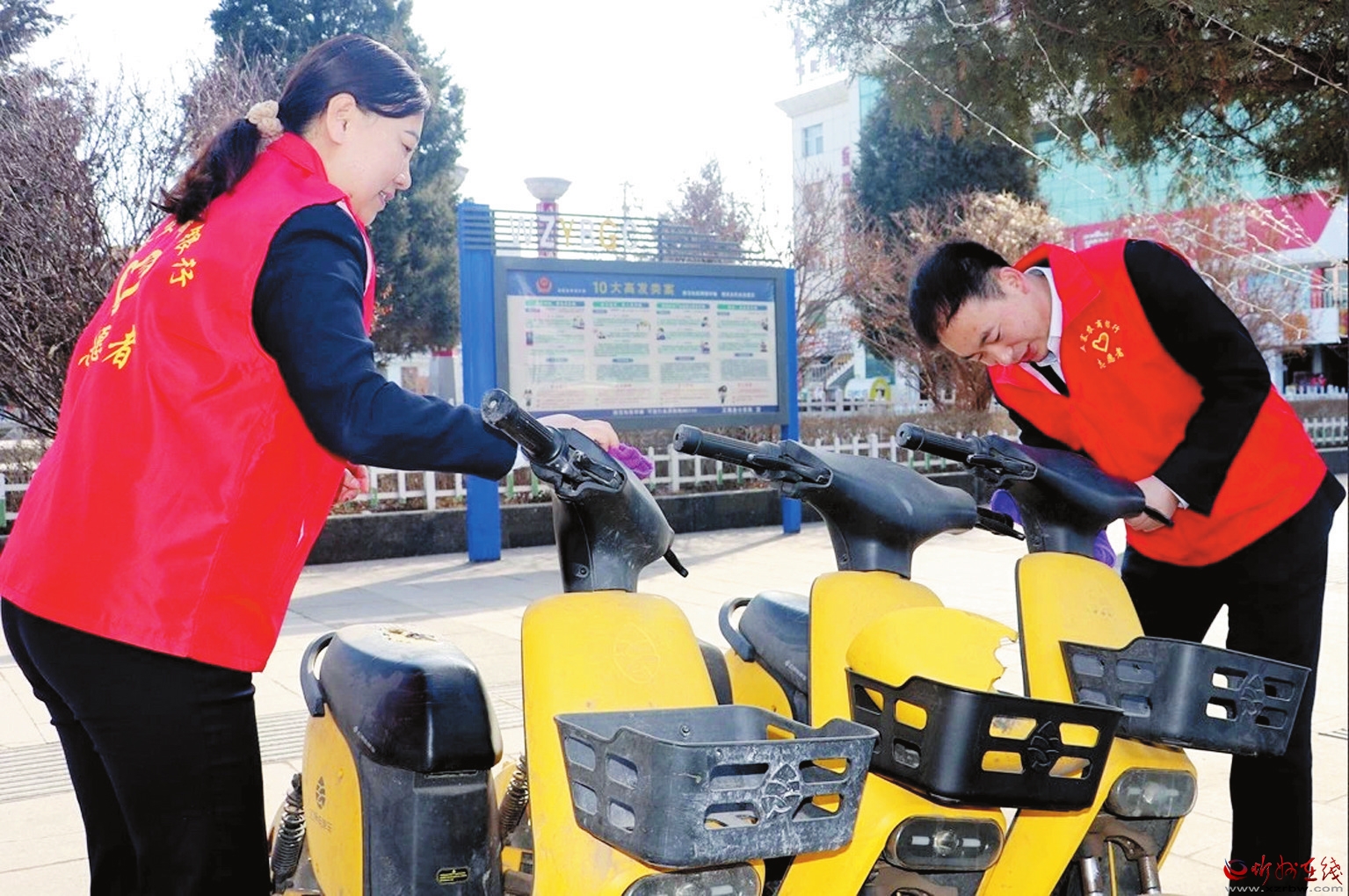 三月春风拂扬柳,雷锋精神闪光芒。为进一步弘扬雷锋精神,推动学雷锋活动常态化,巩固提升创卫成果,营造和谐优美环境,连日来,五寨农商银行机关党员志愿服务队组织开展了“擦亮共享单车,助力文明出行”志愿服务活动。(张家源摄)