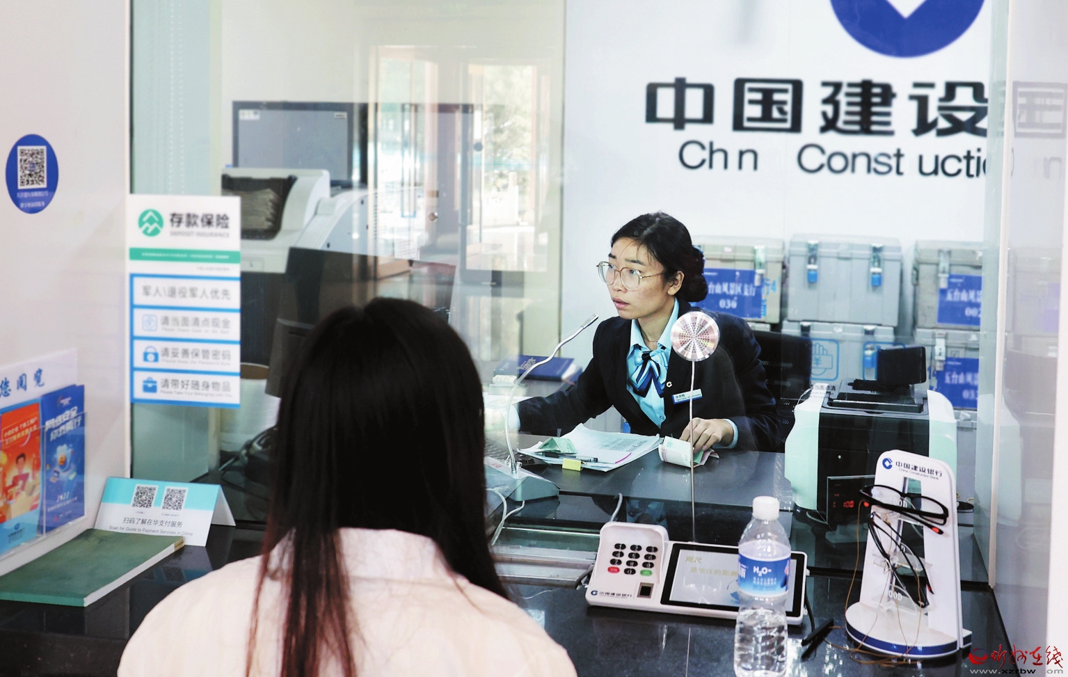 建行五台山风景区支行始终秉持客户至上的经营理念,用心对待每一位客户。该行以优质高效的贴心服务,切实提升客户的获得感和满意度,进而推动建行业务实现更快发展。图为该行柜台员工正全神贯注地为客户服务,以认真负责的态度传递着建行的服务理念,建行的服务品牌也在每一个细微之处得以彰显。(宫清华摄)