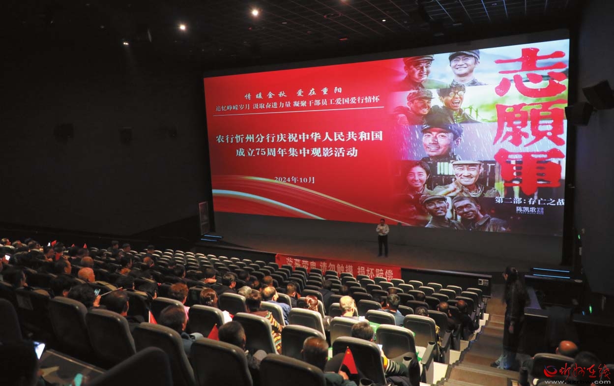 近日,农行忻州分行组织机关员工和离退休职工共同观看《志愿军:存亡之战》红色电影。此次观影活动,旨在追忆峥嵘岁月,汲取奋进力量,凝聚爱国爱行情怀,激发员工奋斗精神,增强战胜困难的信心和决心,以推动全行高质量发展。 (殷俊摄)