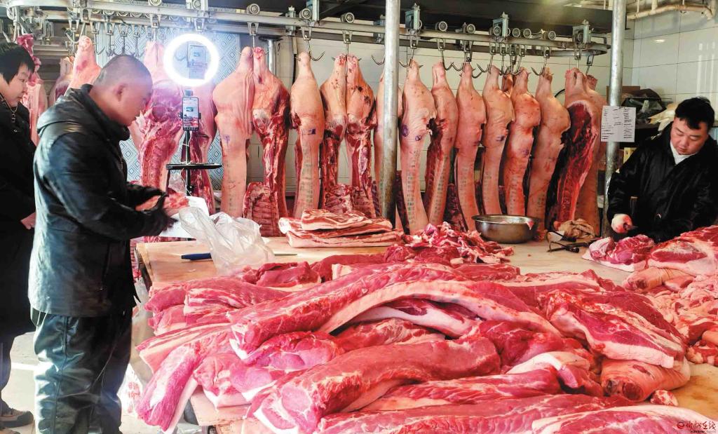 腊月里的寒意,挡不住置办年货的热情。走进忻州城区老聂诚信肉行,一派红火景象扑面而来——新鲜的猪肉在宽大案板上码放得齐齐整整,泛着红润鲜亮的光泽,仿佛是年画里跳出来的景象。店员小张手起刀落,动作干净利索;电子秤的嘀嗒声、顾客的询问声、寒暄的笑语声,在这方小小店铺里交织成最朴实动听的新春序曲。(本报记者李涛摄)