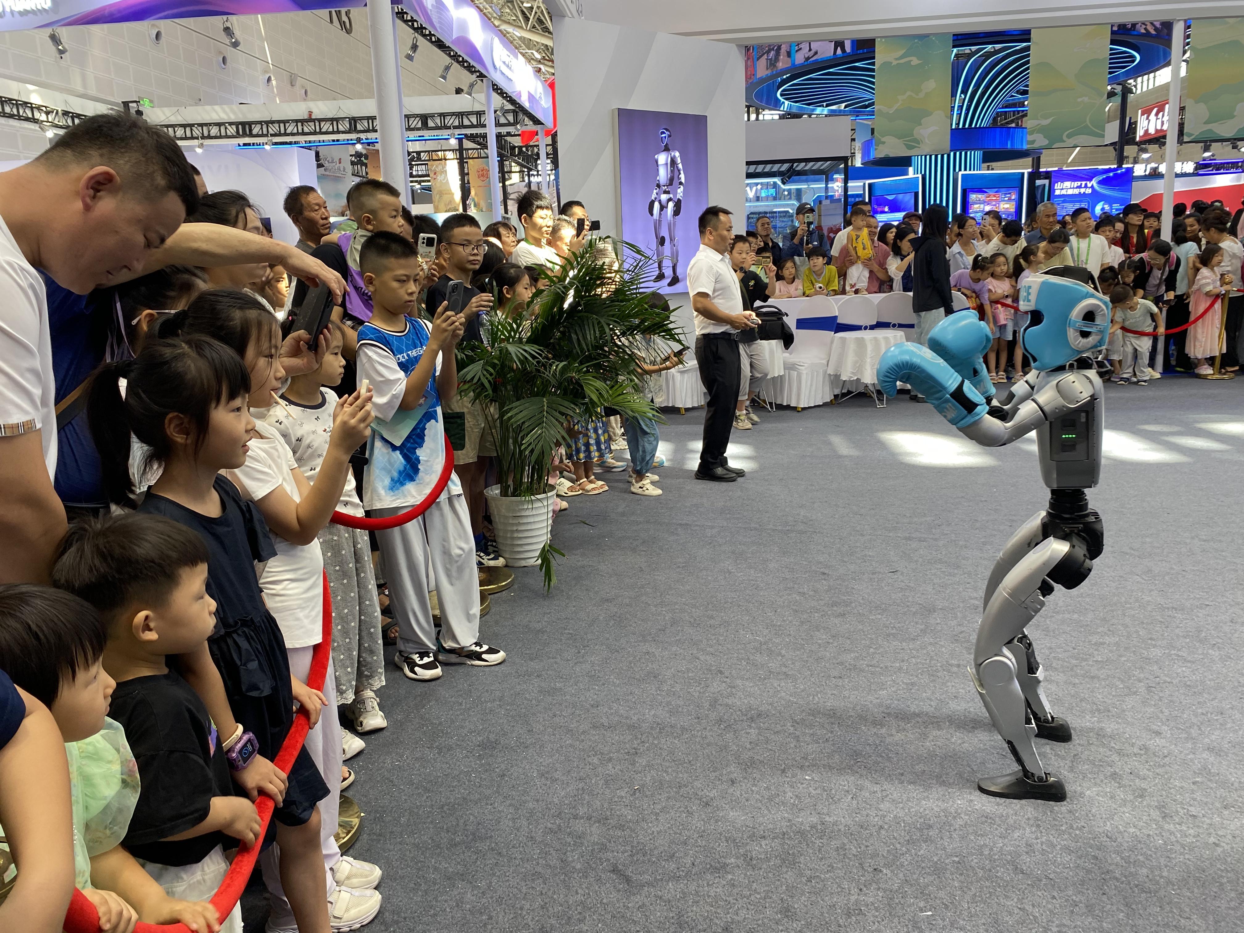 本届文博会上,科技体验区成为现场最具人气的打卡地。山西省文化和旅游厅展区推出以晋侯鸟尊为灵感的虚拟数字人“青鸟”,向观众娓娓道来侯马盟书的前世今生;山西日报社展厅的AR读报体验区排起长队,原本平面的晋商文化报道“变身”为可感可触的立体影像;文化科技馆的宇树科技展区,几个人形机器人齐刷刷翻出后空翻,引来观众席一片惊呼。新型旅游装备、智能体育、智慧文物、虚拟现实等前沿领域的众多创新产品齐聚本届文博会,让观众看到不一样的文化,机器狗、仿生机器人、低空驾驶、无人导览车和地下考古方舱等体验项目,让观众直观感受到科技为文化带来的全新活力。