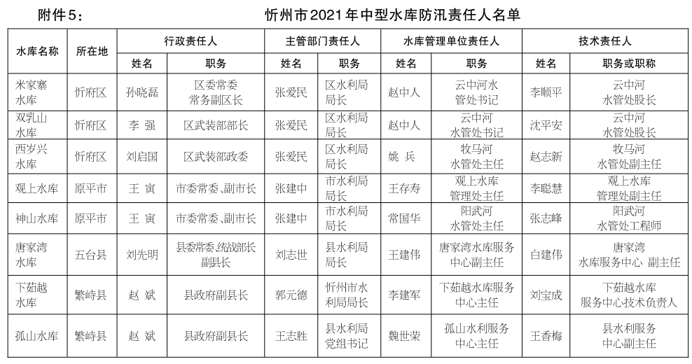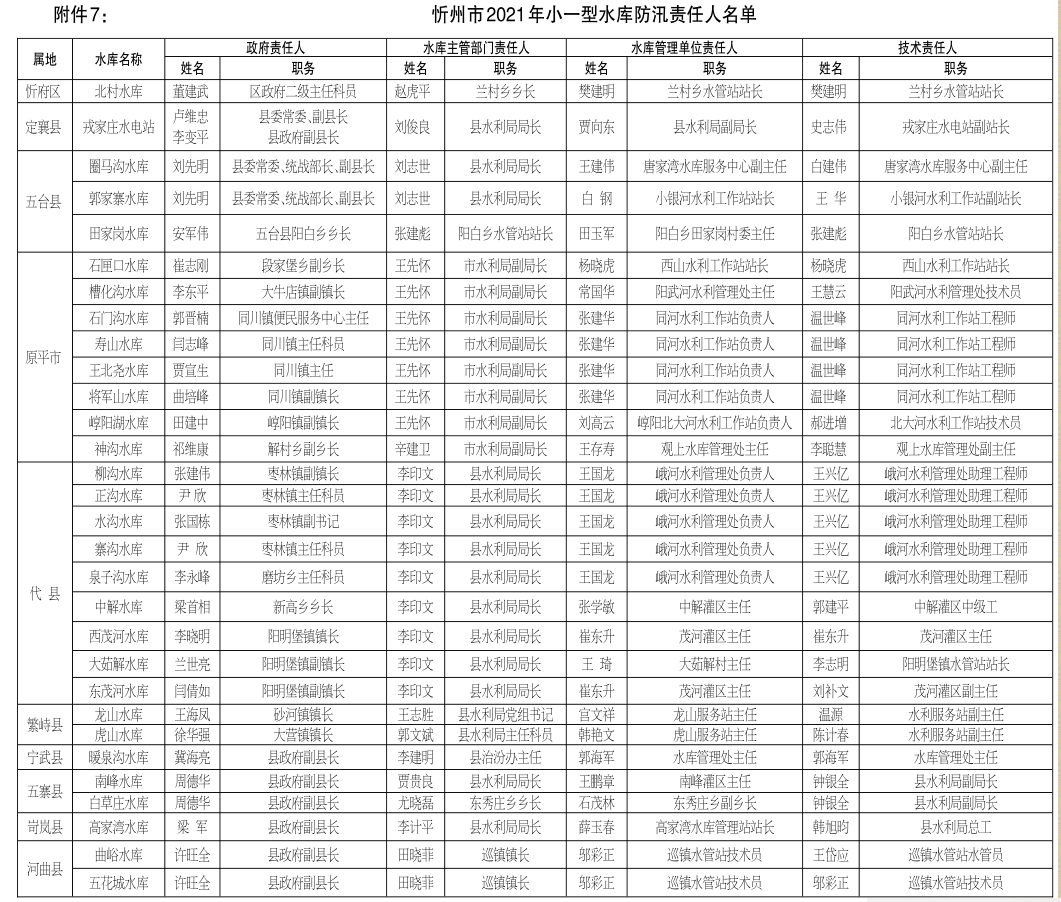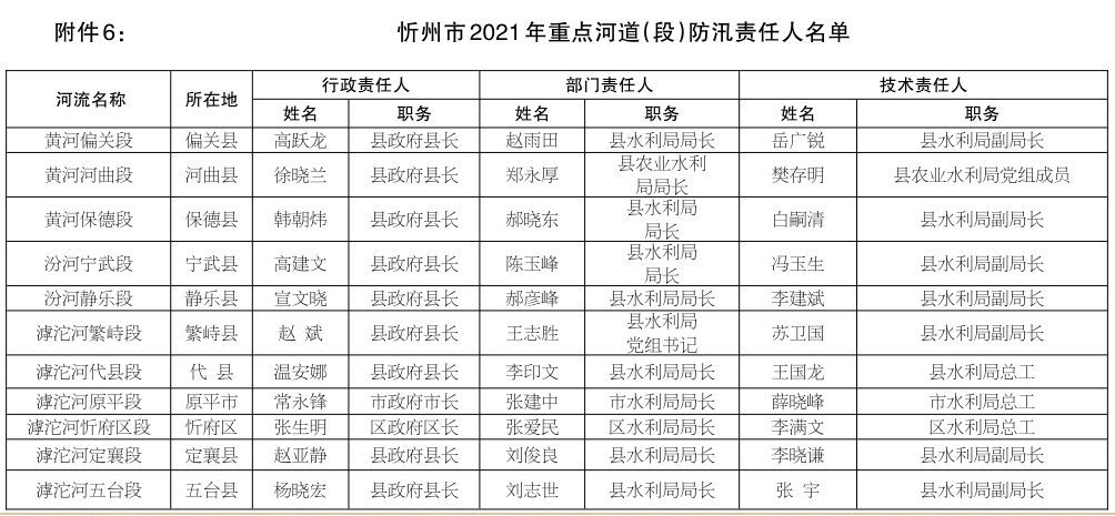 6.忻州市2021年重点河道(段)防汛责任人名单