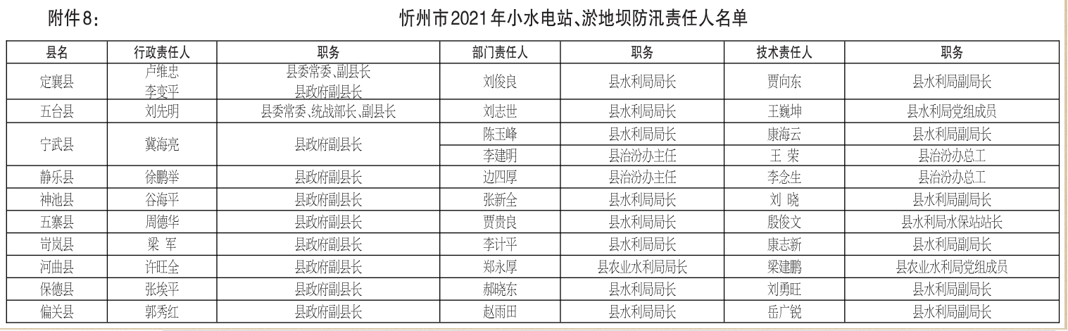 8.忻州市2021年小水电站、淤地坝防汛责任人名单
