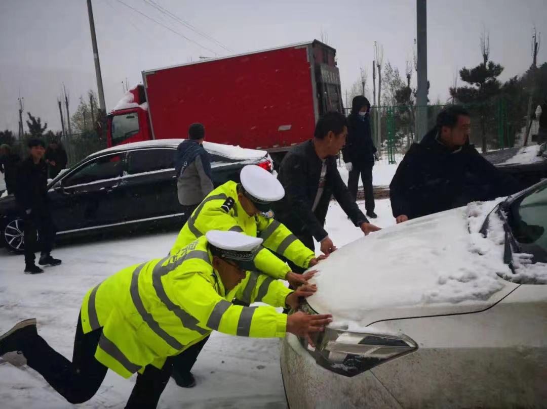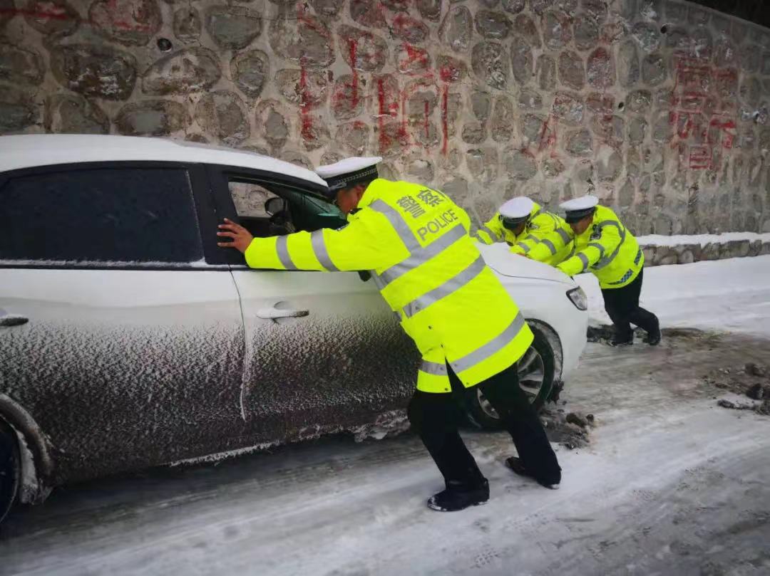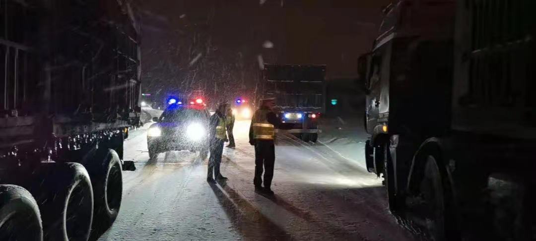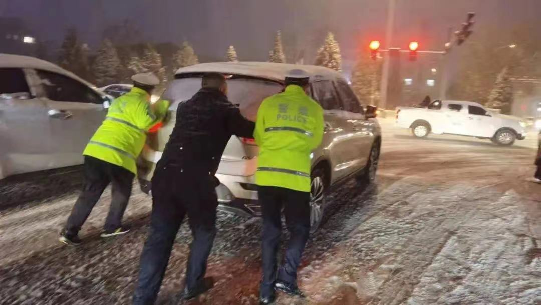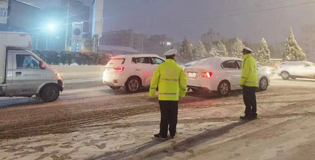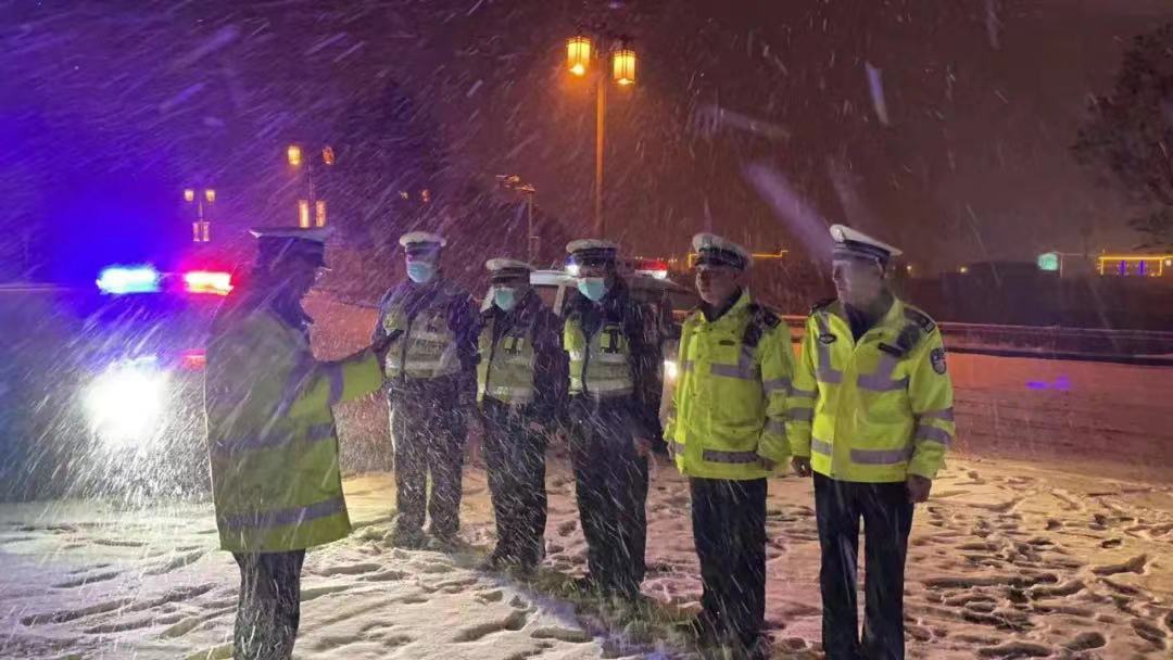 期间,大队按照冰雪天气道路交通应急管理相关工作要求,组织民警辅警加强对路面湿滑、积雪路段、急弯陡坡、易发生交通事故的隐患路段巡查;在重点交通路段、路口部署警力,引导车辆安全行驶,并提醒司机减速慢行。