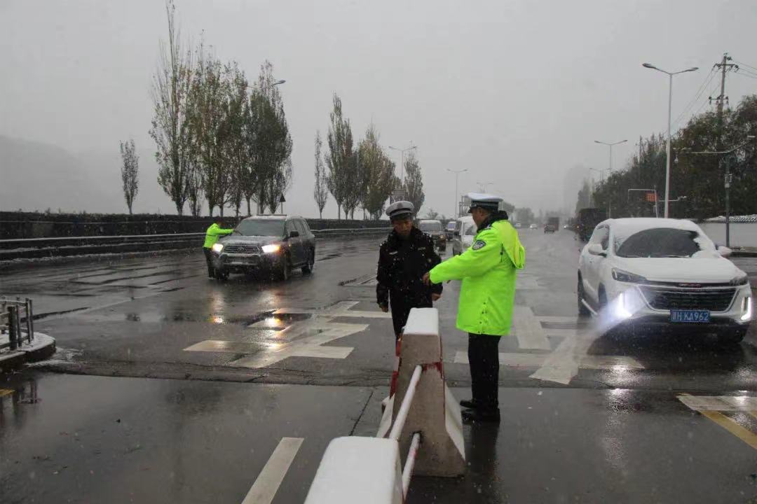 工作中,交警大队迅速启动恶劣天气应急预案,民警辅警全员上岗,在辖区各主要路段、路口采取定点执勤与流动巡逻相结合的方式,加大路面管控和指挥疏导力度,防止高峰时段因雪天路滑造成拥堵现象。