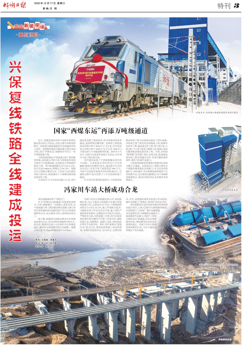 兴保复线铁路是贯通神瓦铁路冯红段的关键后方通道。全线投运后,将极大强化瓦日铁路的煤炭集运系统能力,有力拉动河保偏矿区、神东煤田、府谷煤源基地等煤炭产区的资源外运,优化煤炭运输格局,对于保障国家能源供应、推动区域经济社会发展具有重要意义。