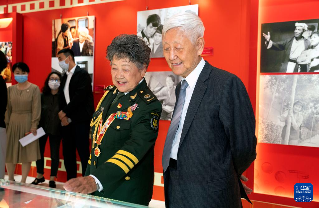 5月19日,老艺术家徐晓钟(右一)、陶玉玲(右二)在第六届中国文联知名老艺术家艺术成就展上观展。